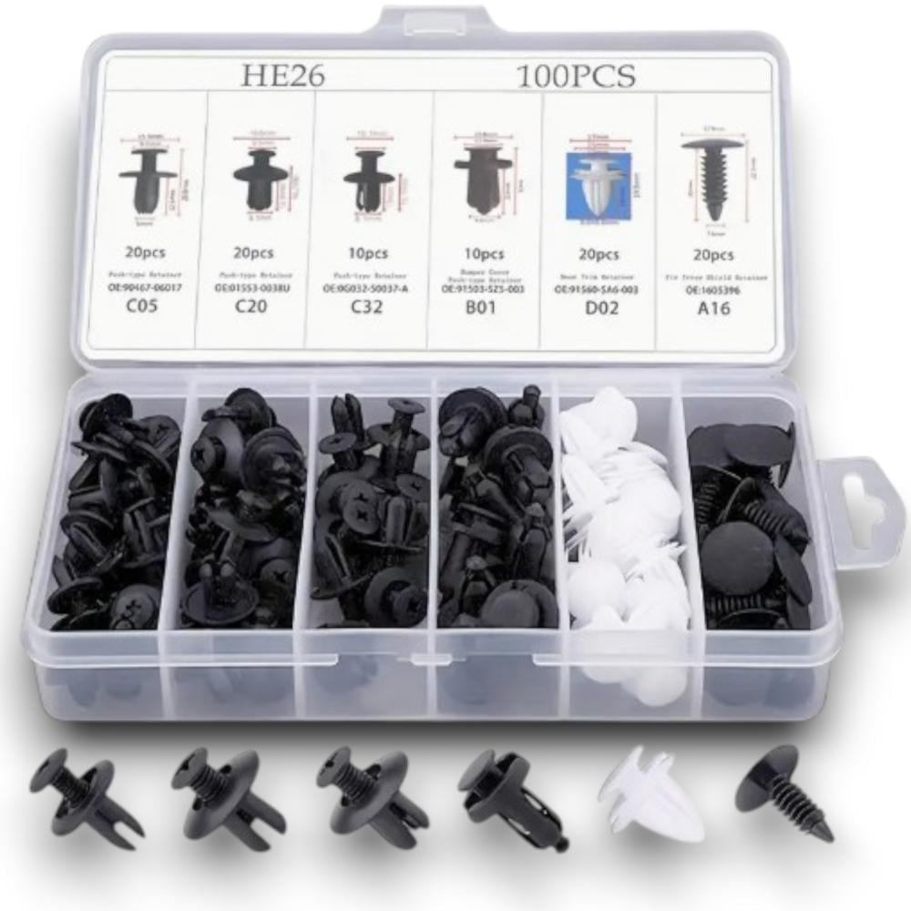 طقم علبة كلبسات سيارات مكون من 100 قطعة، مثالي لتلبية جميع احتياجاتك من كلبسات سيارات. يتميز طقم كلبسات سيارات بجودة عالية، حيث تم تصنيعها من مواد متينة تضمن لك الاستخدام الطويل والموثوق.
